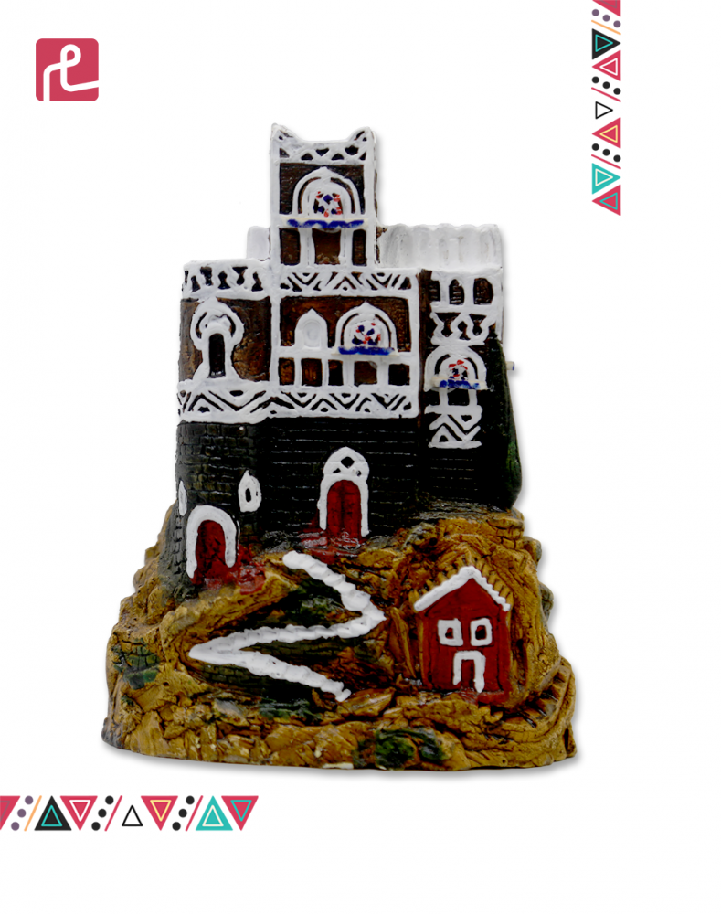 تحفة مصنوعة يدويا تصور دار الحجر بتصميم رائع ودقة فائقة، مصنوع بإتقان من الجص وفيبر بلاستيك، يعبر عن فن وروعة العمارة التقليدية اليمنية..