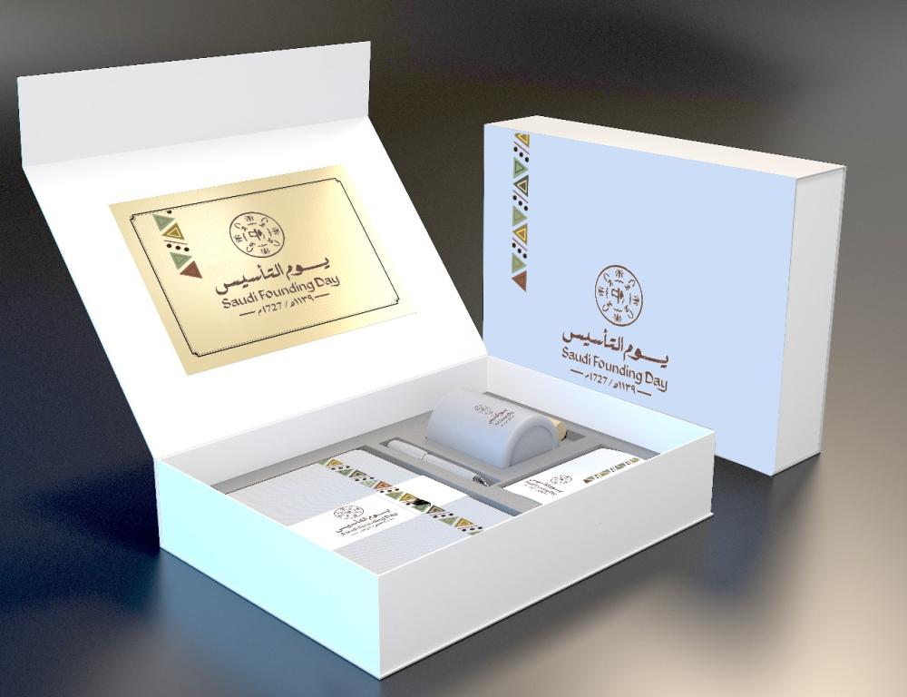 هدية يوم التأسيس هذه الهدية تضم كوبًا ( مج ) مصنوعًا من السيراميك الأبيض، مزين بزخارف تراثية سعودية مستوحاة من الثقافة الأصيلة، مع شعار يوم التأسيس الذي يضفي لمسة احتفالية مميزة. كما تحتوي على قلم مزخرف يدويًا بتفاصيل دقيقة، يعكس الأناقة والتراث في تصميم عملي وفاخر. بالإضافة إلى ذلك، يضم البوكس دفتر ملاحظات صغير بغلاف مزخرف وتصميم متناغم، مثالي لتدوين الذكريات أو الملاحظات. ولإكمال التجربة، تتضمن الهدية إكسسوارات زخرفية تراثية تضيف بعدًا جماليًا خاصًا، ما يجعلها اختيارًا متكاملاً ومثاليًا للاحتفال بيوم التأسيس بأسلوب يجمع بين الفخامة والأصالة.