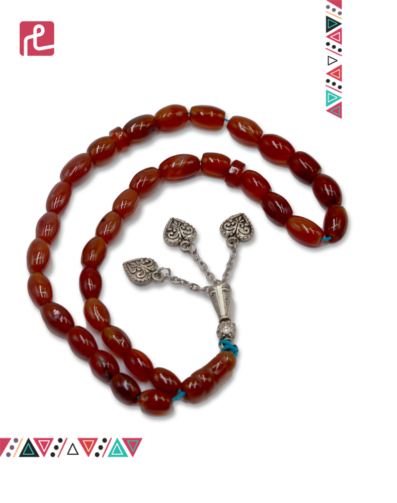 مسبحة عقيق يمني غامق درجة اولى 33 خرزة خراطة من الفضة الخالص.
