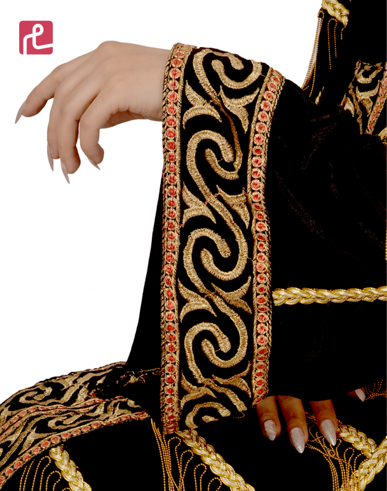 لمسة من التفردبإطلالتك بالزي الصنعاني المصنوع من القطيفة الجميلة والمزين بحزام مطرز باليد والخصر بنقشة أنيقة بالسلاسل الذهبية