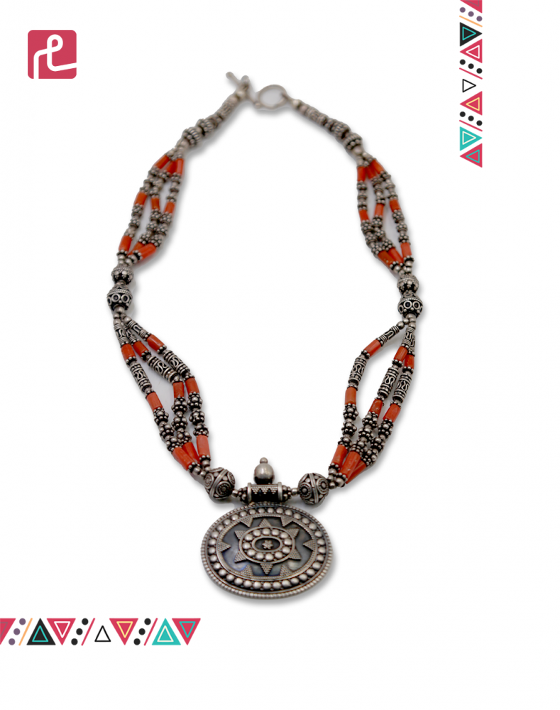عقد فضة بحبات المرجان الطبيعي