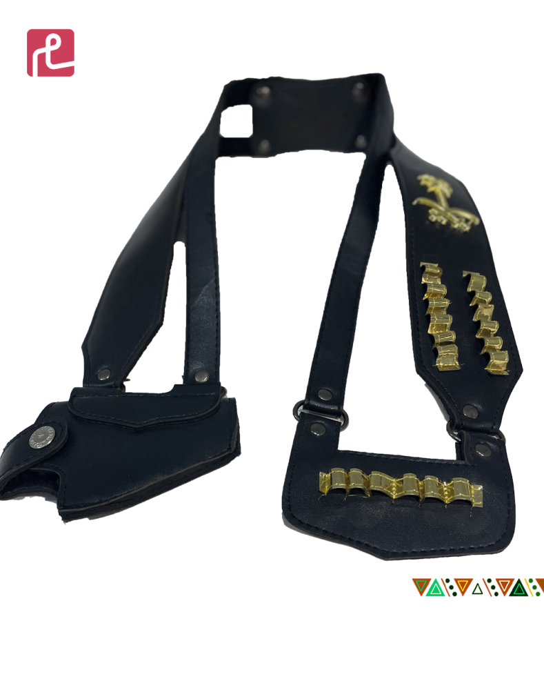 يتكون من دقلة كشميرية أنيقة. يكتمل الطقم بعقال مقصب فيصلي دورين، غترة بيضاء، ومجند جلدي يحمل خنجرًا ذهبيًا منقوشًا بدقة.